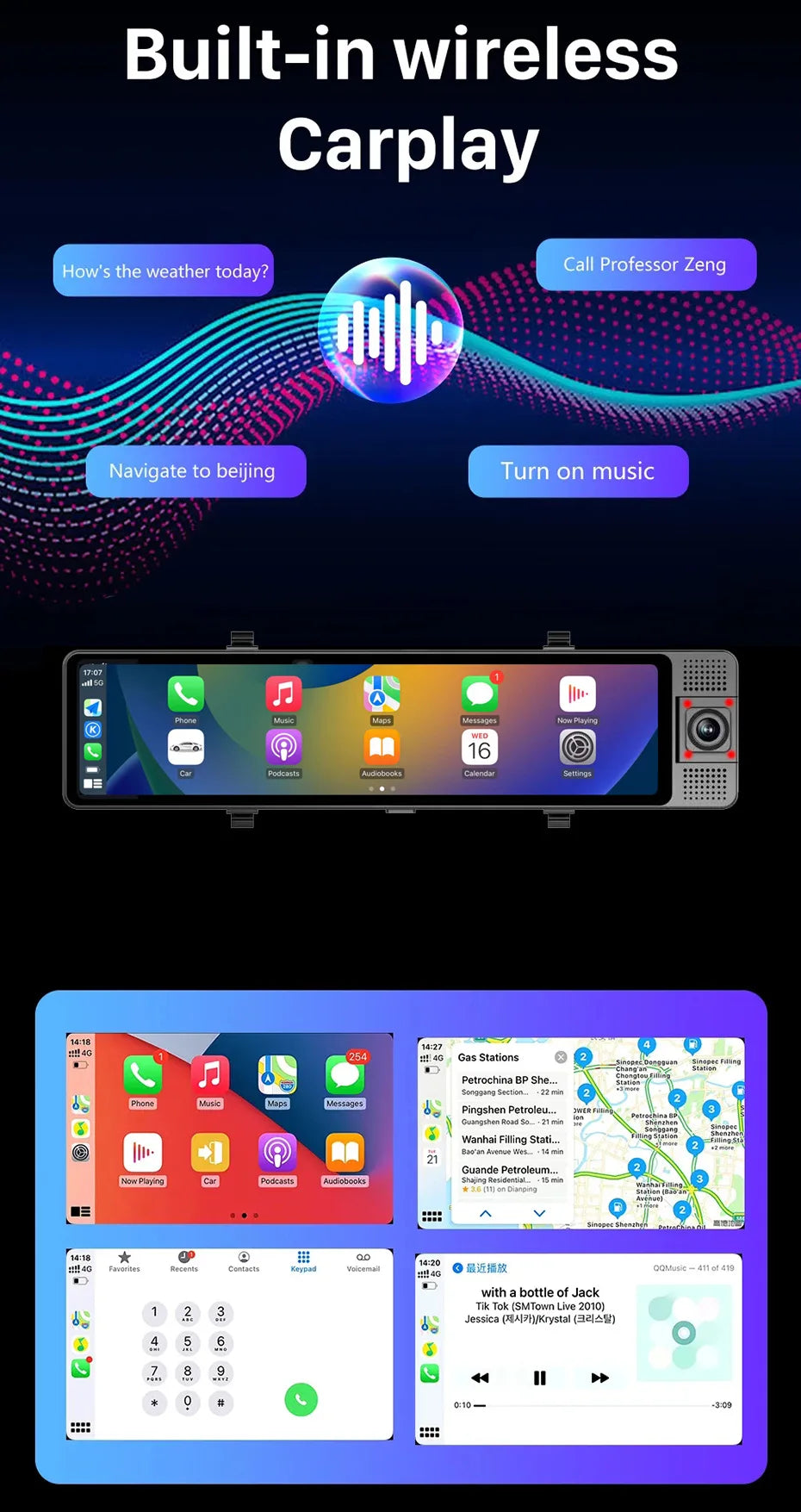 š„ Triple Cameras: Front 1080P + Cabin 720P + Rear 1080P.